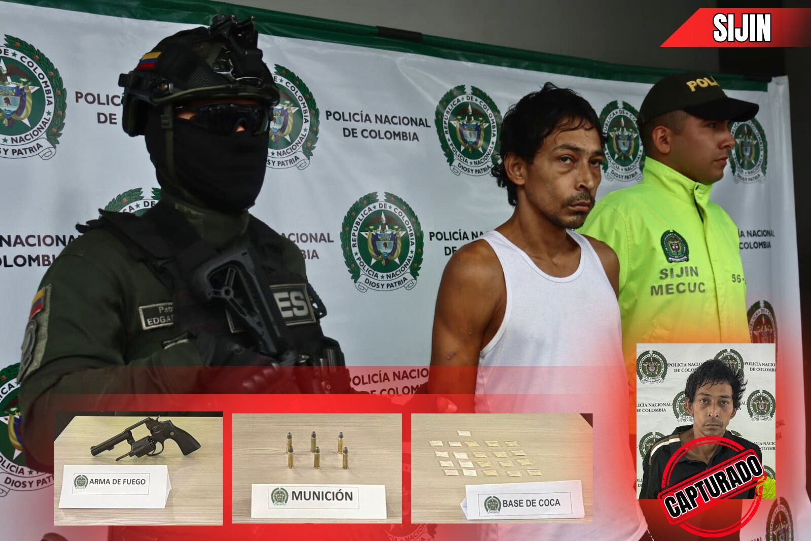 Durante el operativo, las autoridades incautaron un revólver, munición calibre 38 milímetros y varias dosis de base de coca listas para su comercialización. Además, se estableció que el detenido presenta antecedentes judiciales por delitos relacionados con tráfico de estupefacientes, hurto y daño en bien ajeno.