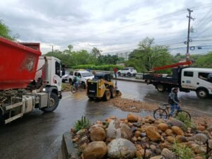 Ante la situación, la Alcaldía activó de inmediato un operativo de respuesta liderado por la Secretaría de Gestión del Riesgo de Desastres, en coordinación con entidades como Veolia y la Secretaría de Movilidad. Gracias a esta articulación, se logró intervenir de forma oportuna los puntos más críticos.