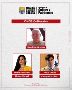 Según el cronograma establecido, los candidatos que cumplen con los requisitos para avanzar en el proceso de elección por el sector de organizaciones no gubernamentales (ONG) culturales son Jesús David Ortega Escobar, María Fernanda Moros Vergel y Mauricio Sánchez, quienes representarán a este importante segmento del ecosistema cultural de la ciudad.