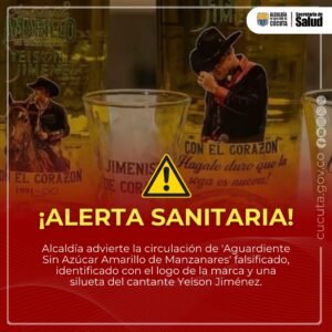La Secretaría de Salud de Cúcuta emitió una alerta a la ciudadanía ante la circulación del licor denominado “Aguardiente sin azúcar Amarillo de Manzanares”, que utiliza de manera fraudulenta la imagen, nombre y logo del fallecido cantante Yeison Jiménez Q.E.P.D., generando preocupación por su seguridad para el consumo humano.