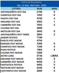 A continuación los Resultados de Las Principales loterías Jugadas el dia 12 de Abril del 2026: