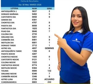 A continuación los Resultados de Las Principales loterías Jugadas el dia 30 de Marzo del 2026: