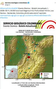 Aunque Colombia es un territorio con actividad sísmica frecuente debido a su ubicación geográfica, las autoridades del SGC han precisado que eventos recientes, incluso los de magnitudes moderadas, han sido ampliamente sentidos en municipios y ciudades por la profundidad y características de los sismos reportados.